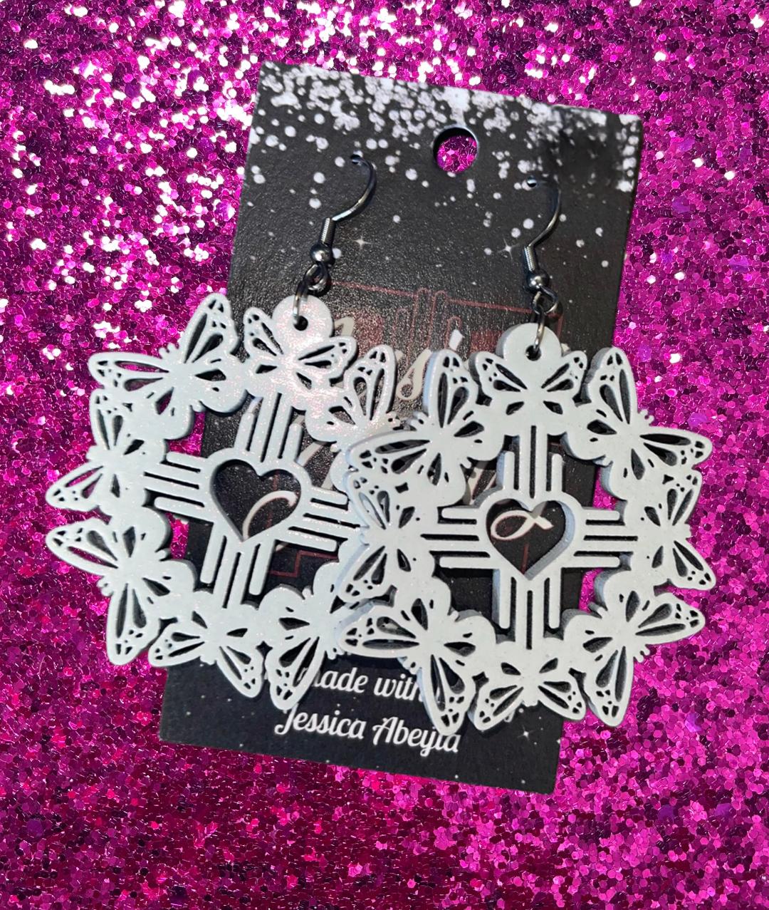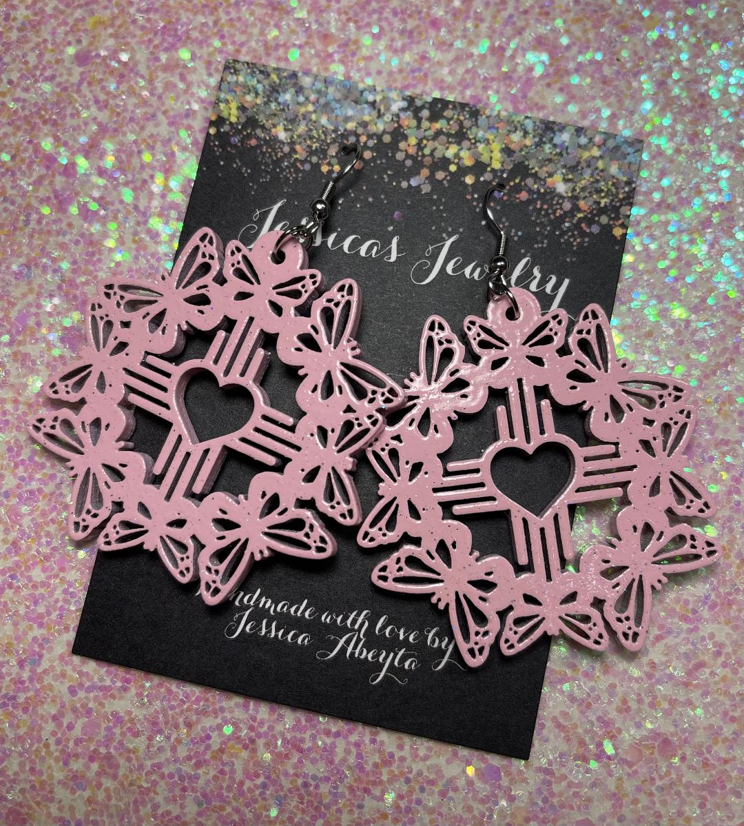 Very lightweight wooden Zia earrings with stainless steel hooks.