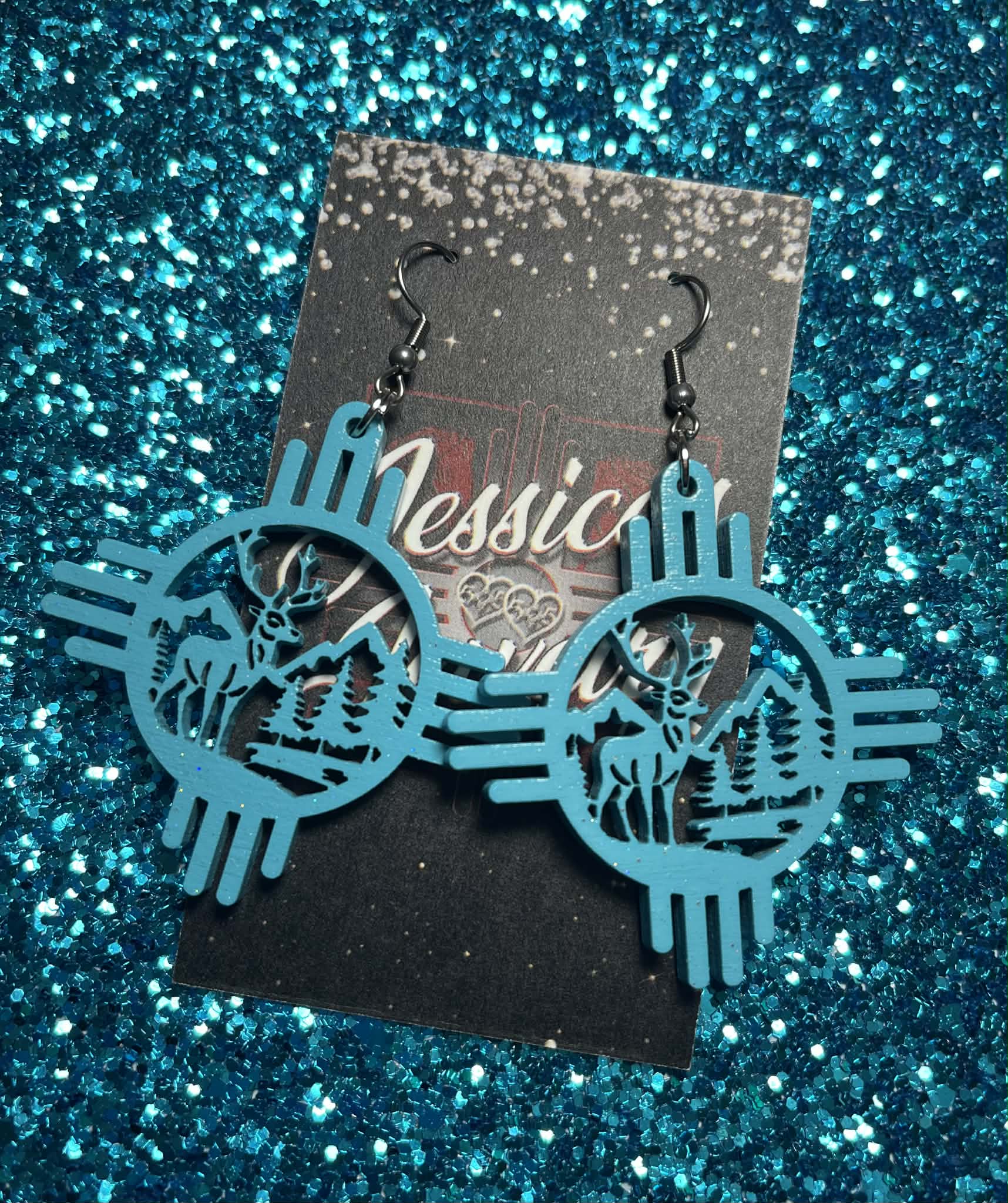 Very lightweight wooden Zia earrings with stainless steel hooks.