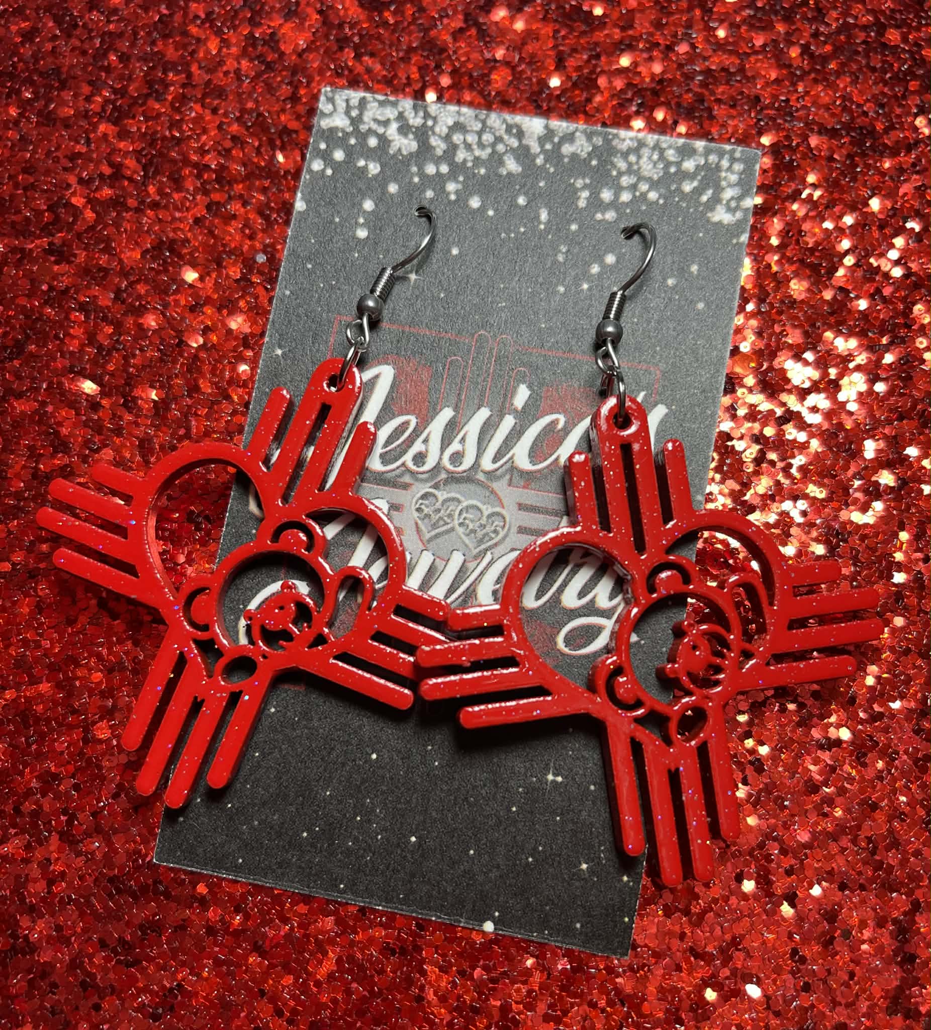 Very lightweight wooden Zia earrings with stainless steel hooks.